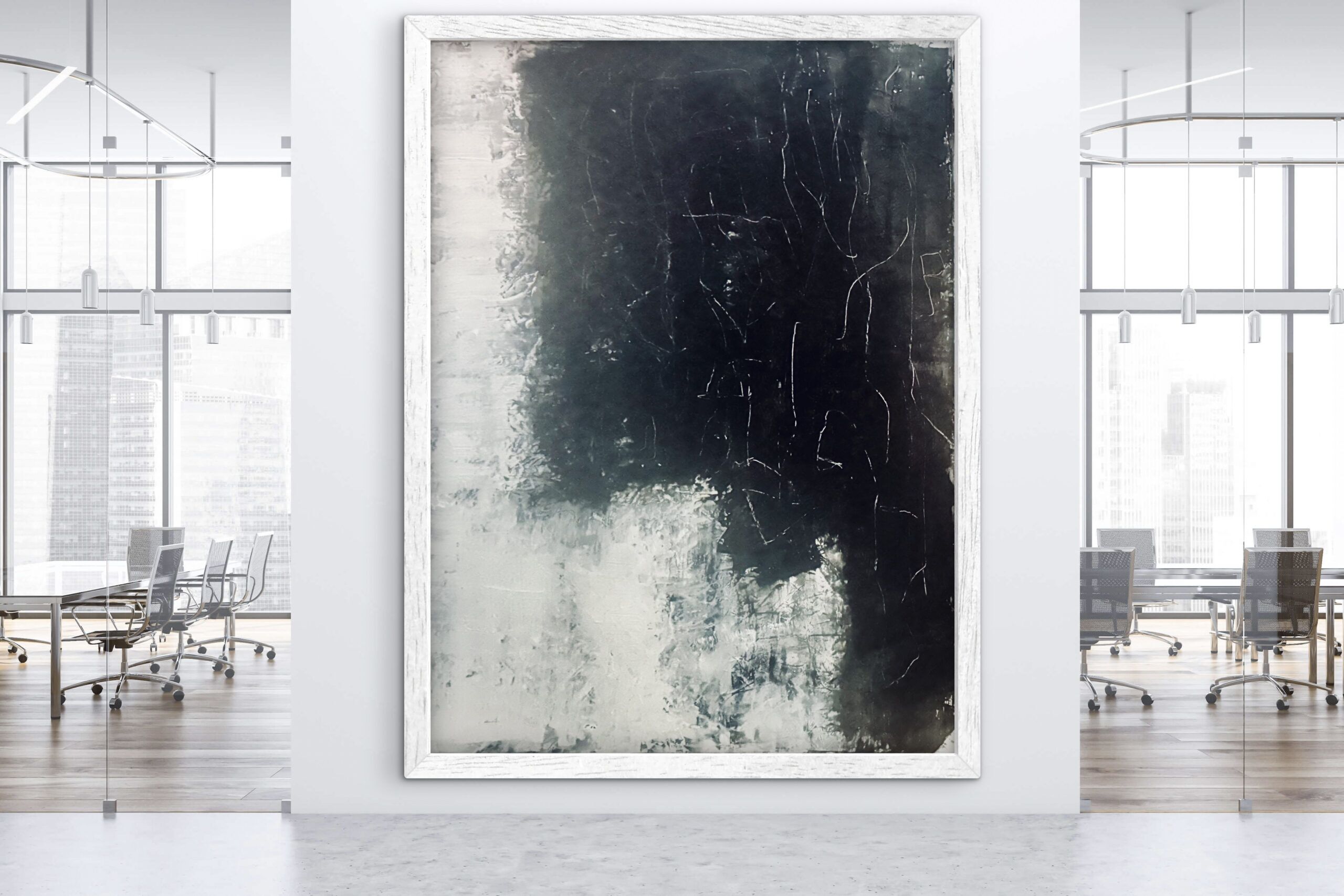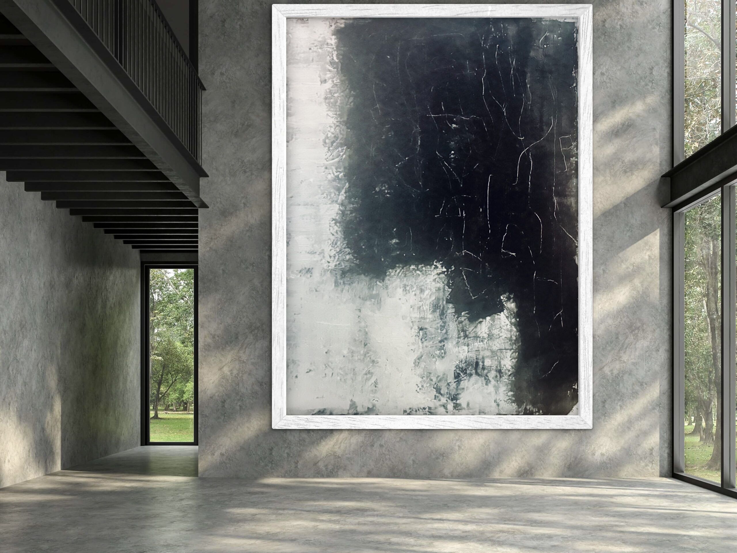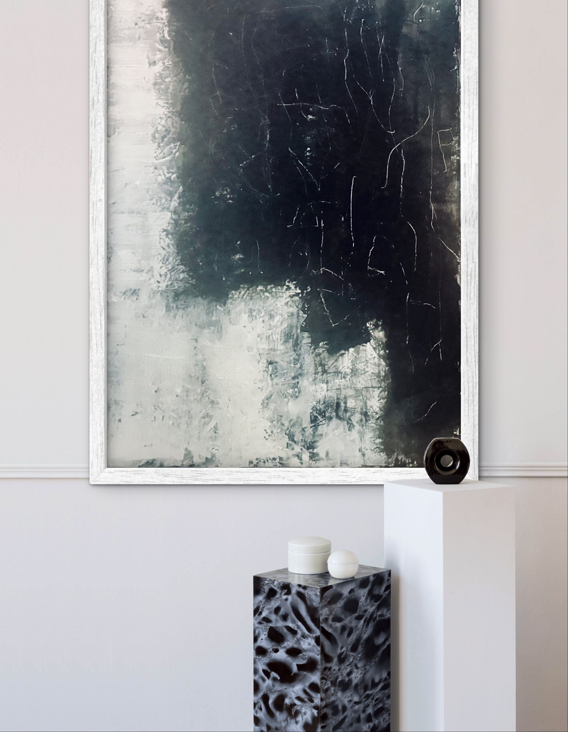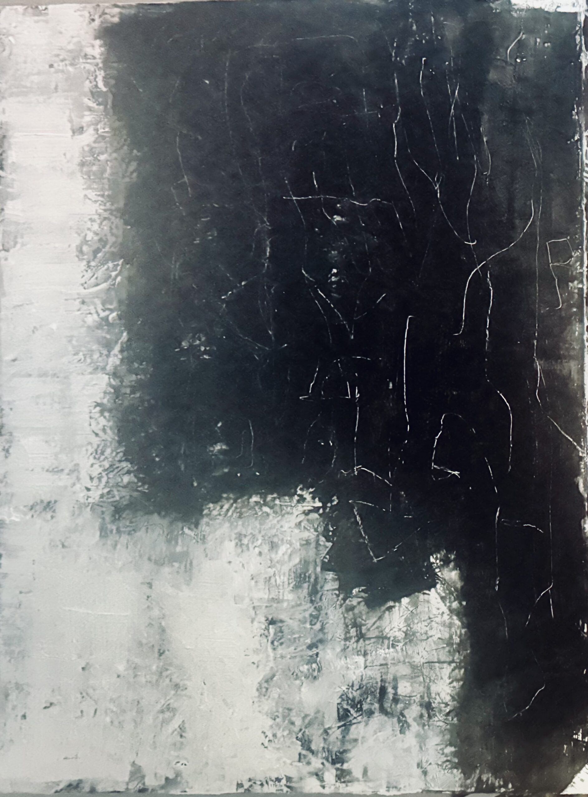 This is a minimalist piece – the subtle transitions from light to dark and the gentle surface fractures give it a deep, meditative atmosphere.
